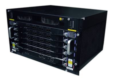 以ATCA-NTW6401機箱為例,這是一款基于ACTA標準(PICMG3.0 R2.0)的6槽機箱。機箱從下往上分別為0至5號槽,采用前后對插形式,符合ATCA規范的單板均能插入機箱使用。機箱由機框單元、通風防塵單元、風扇單元和電源單元組成。0號槽為交換控制板槽(插入ATCA-SC640),1-5號槽為線卡槽(插入HFC602、CNT8、CNT16、PFC802等),背板連接采用單交換板構造。機箱采用雙電源冗余設計,電源電壓為標準220V AC或者48V DC電壓。高集成度設計理念提供了更高密度的接口,在單位體積內為用戶提供了更高密度的處理接口,為用戶節省了大量的機柜空間和采購維護成本。圖2中,滿配了5塊ATCA-PFC802。