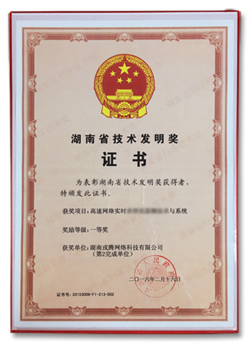 "高速網(wǎng)絡實時多樣化××技術(shù)與系統(tǒng)"項目獲得湖南省技術(shù)發(fā)明獎一等獎